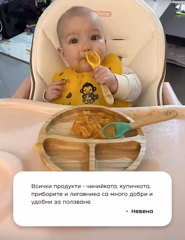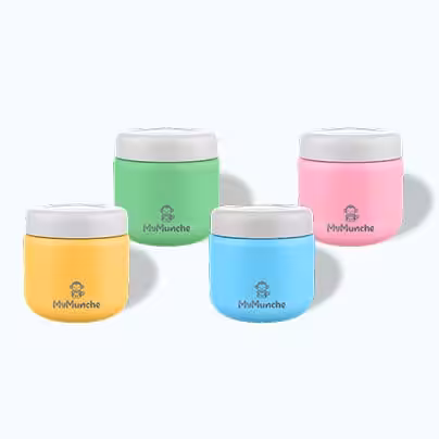 Можете да започнете да използвате продуктите на MyMunche още от периода на захранването на бебето (4-ти/5-ти месец). А също и да продължите с храненето на детето си с тях чак до 3-4-годишна възраст, когато то вече може и да се храни самостоятелно.