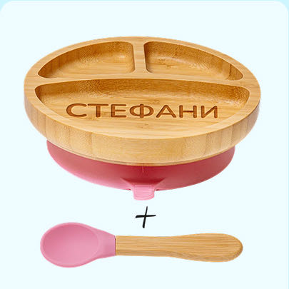 Лъжичките които са включени в комплекта с купичка и чинийка, могат да бъдат гравирани, ако изберете опцията за гравиране при завършване на поръчката (под полето за адрес за доставка).