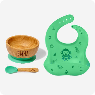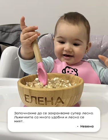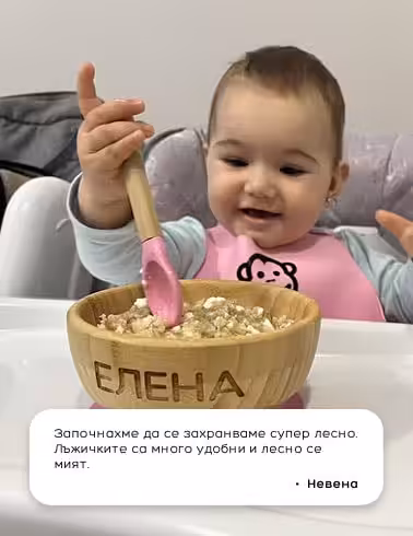 Лъжичката е съчетание от бамбука, използван за направата на купичката, и силикона, използван за вакуумния пръстен. Мекият накрайник на лъжичката има за цел да защити нежните венци на детето в случаите, когато то инстинктивно захапва, а все още няма зъбки.