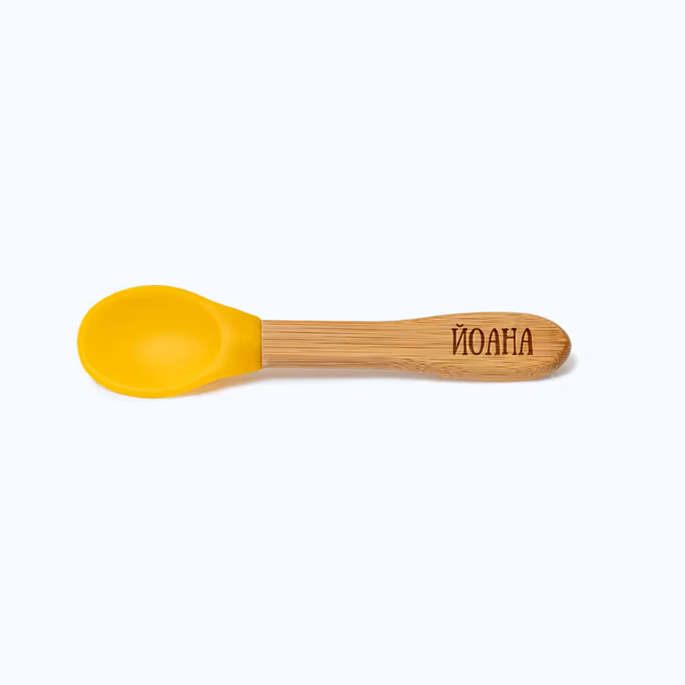 Лъжичките които са включени в комплекта с купичка и чинийка, могат да бъдат гравирани, ако изберете опцията за гравиране при завършване на поръчката (под полето за адрес за доставка).