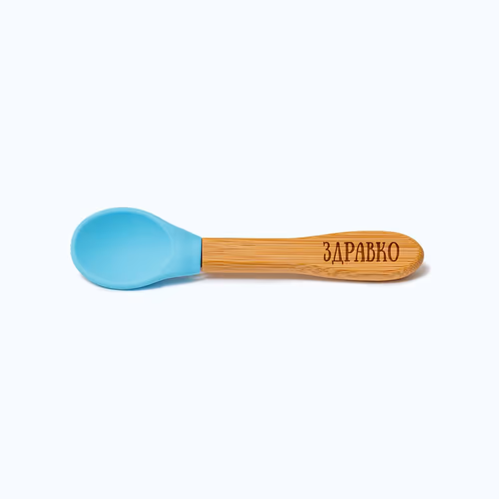 Силиконова лъжичка с бамбукова дръжка – 14 см дължина на цялата лъжичка; 5 см дължина и 3 см ширина на силиконовата част (това е частта, от която детето всъщност похапва)
