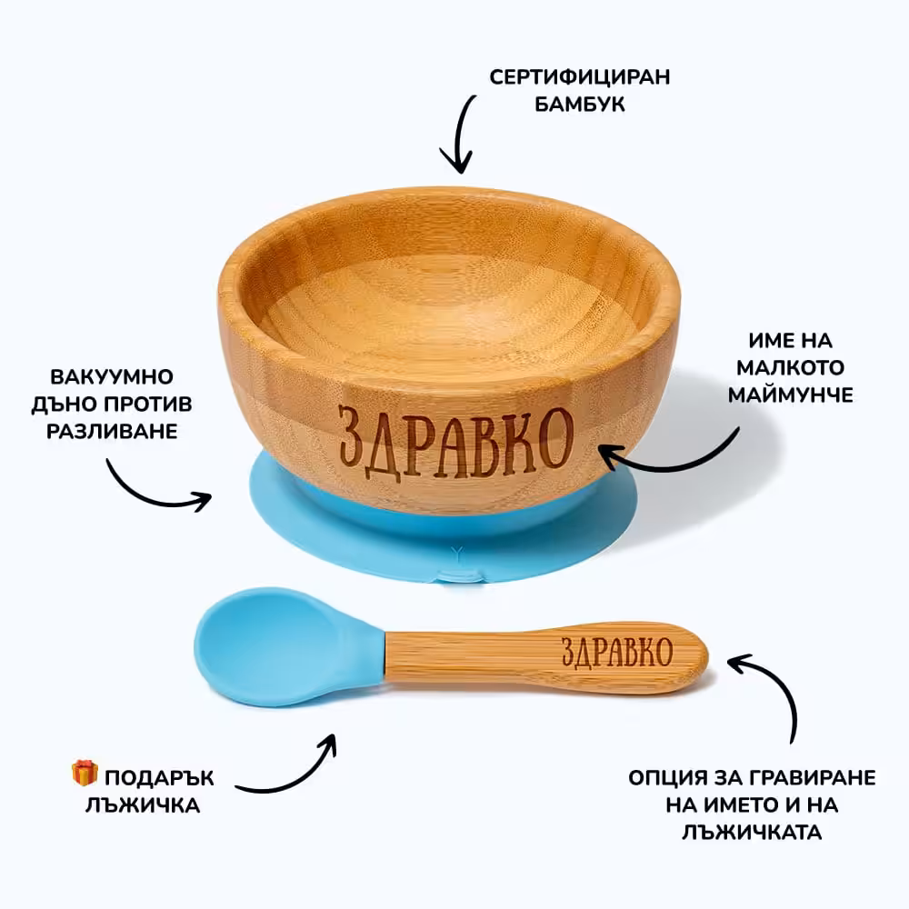 Лъжичките които са включени в комплекта с купичка и чинийка, могат да бъдат гравирани, ако изберете опцията за гравиране при завършване на поръчката (под полето за адрес за доставка).