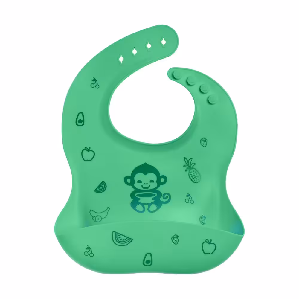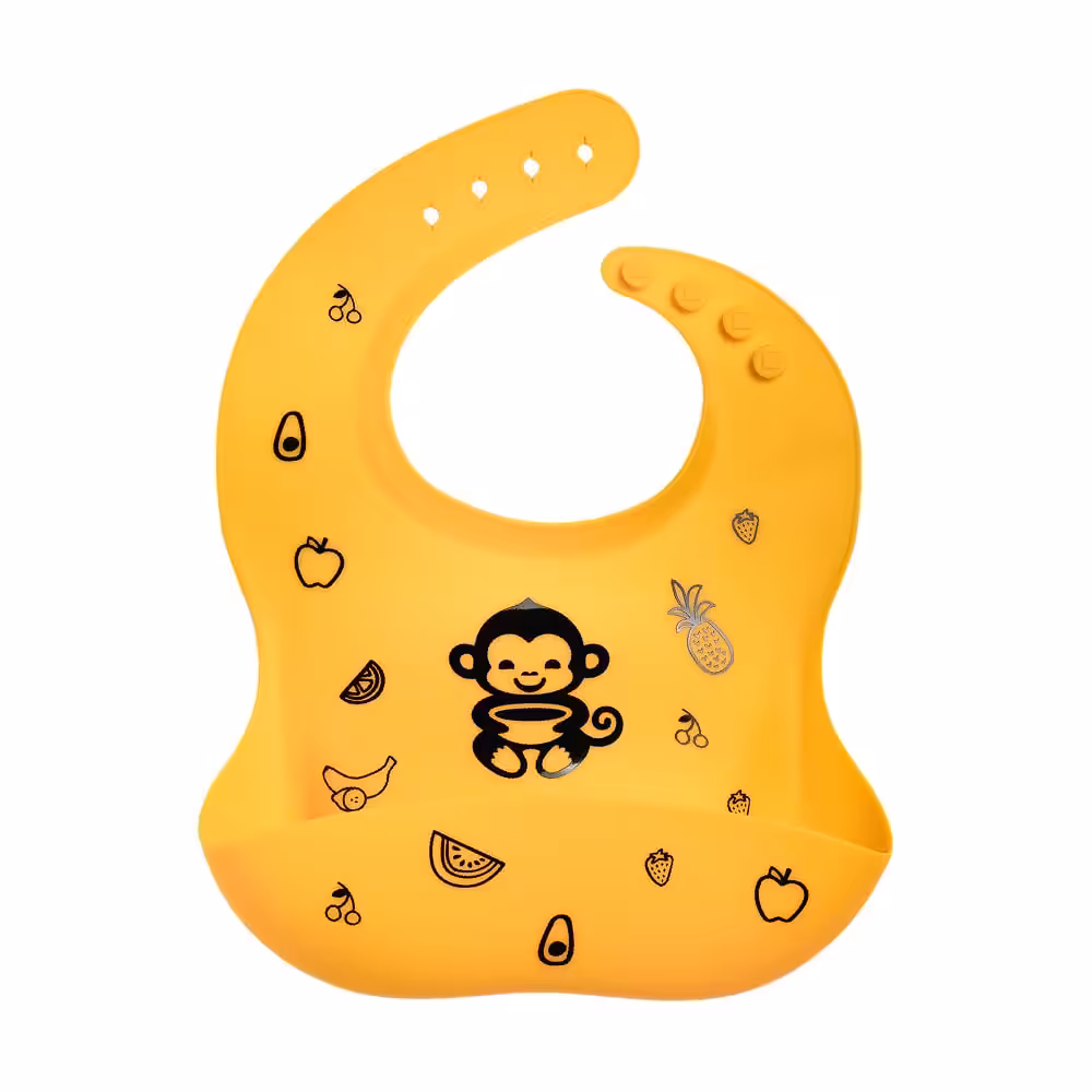 Силиконовият лигавник MyMunche е водоустойчив, напълно непромокаем. А в края си завърша с джобче, което събира храната, която не успява да улучи устата на палавото малко маймунче или пък бебчо настойчиво плюе.